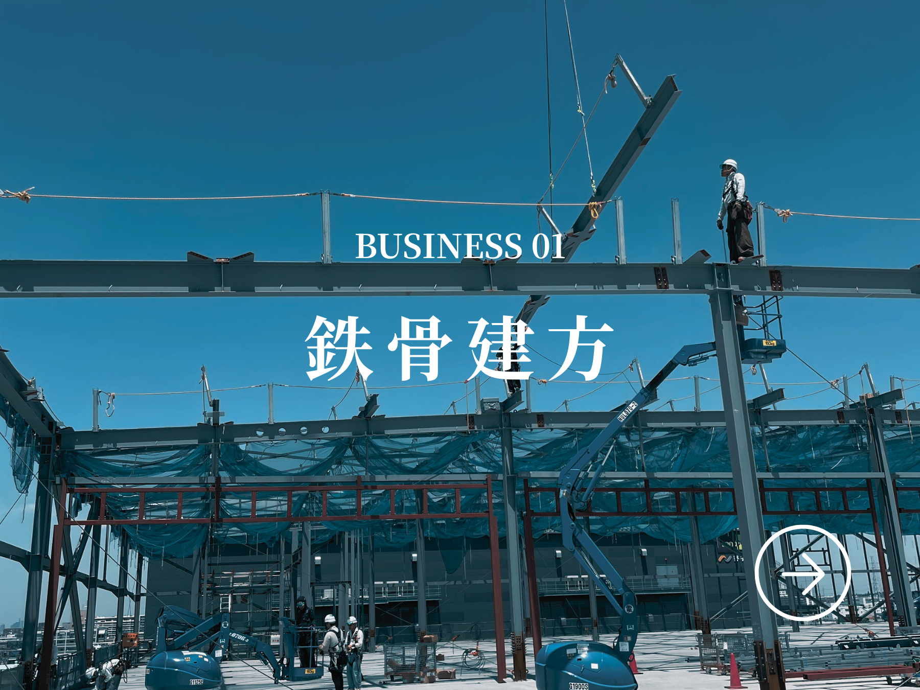 鉄骨建方・本締め・デッキ張り・鍛冶工事まで、各工程を熟練の職人が一貫対応。高品質な鉄骨工事を支える秀栄の業務内容をご紹介します。