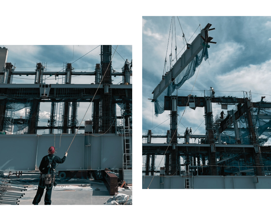 豊富な現場経験と緻密な段取りにより、短納期でも高品質を両立。建方・本締め・デッキ張り・鍛冶工事まで一貫してスピーディーに対応し、工期遵守の強いパートナーとして多くの現場から信頼を得ています。