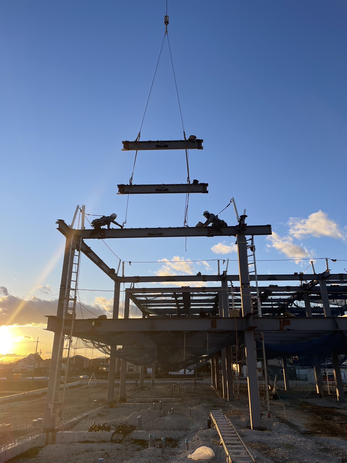 栃木県鹿沼市で行われた事務所建設において、鉄骨建方、ボルト本締め、デッキ張り工事を担当しました。地域に根ざした施工会社として、安全第一で確実な仕事を心がけています。