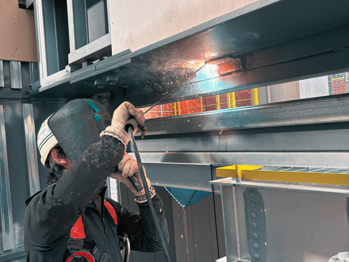 鍛冶工事は、現場で鉄骨を加工し、設計通りの形へ仕上げる専門技術を要する工程です。ガス切断や溶接によって鉄骨の調整や補修を行うため、わずかな狂いも許されない精密さが求められます。